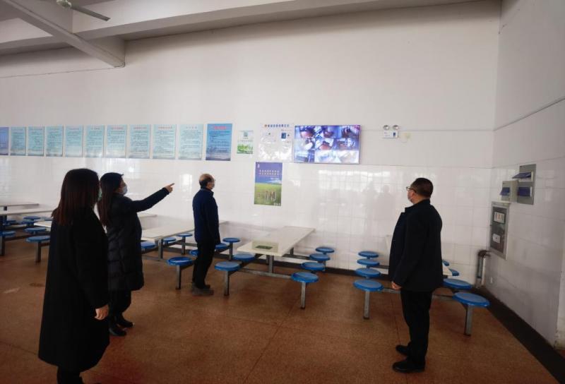 督学组对学校安全工作进行了全面细致的检查,重点查看了食堂的配套设施、设备使用、食堂卫生、消毒等进行了细致的询问和检查,对学校规范落实食堂各项安全与卫生制度表示肯定。