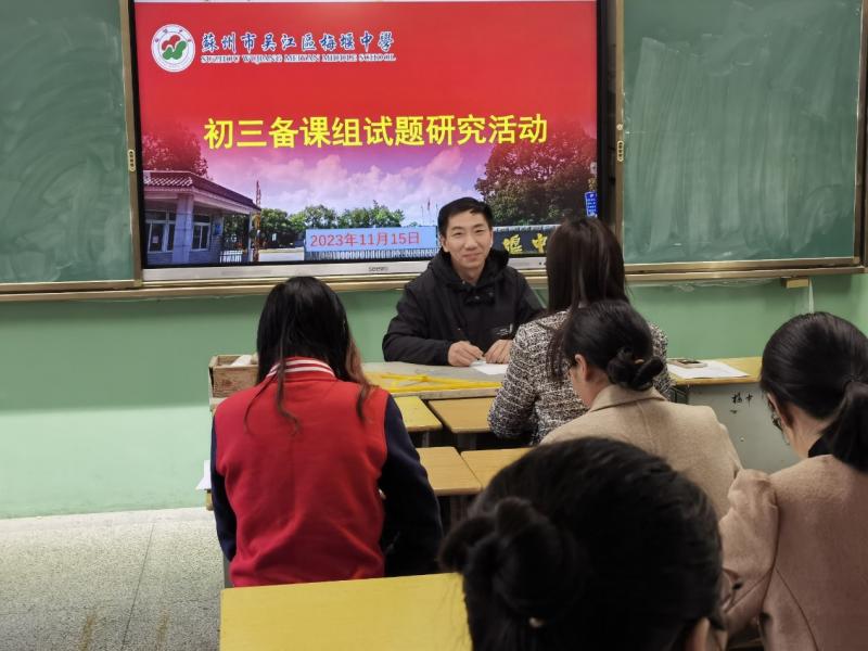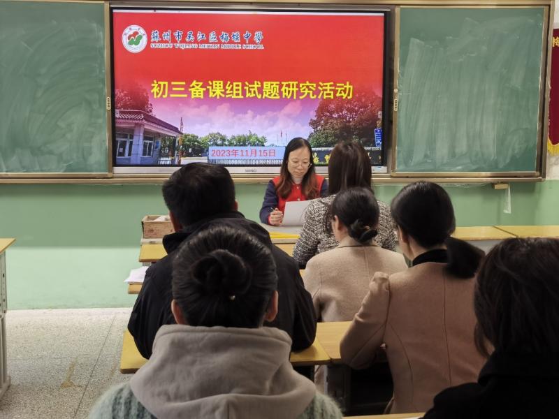 11月15日下午, 2023年初三试题研究专题研究活动在电化教室如期召开。朱国松副校长莅临指导,教务处主任郭仕忠主持会议。初三全体学科教研组长、各备课组长参加本次活动。