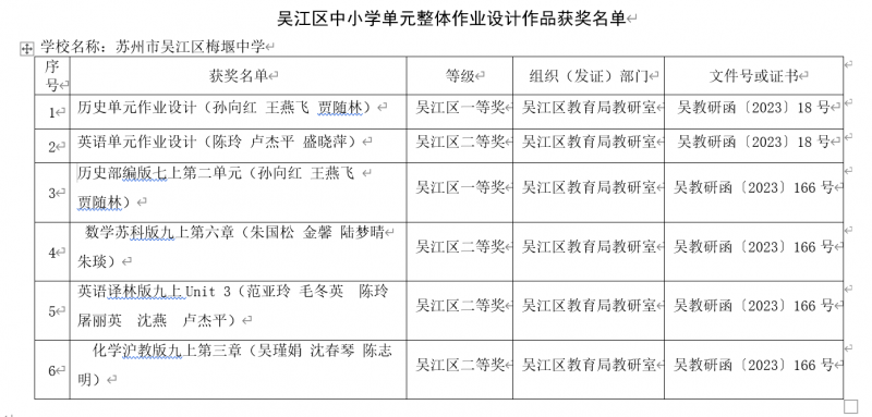 吴江区梅堰中学单元整体作业设计作品评选获奖名单揭晓