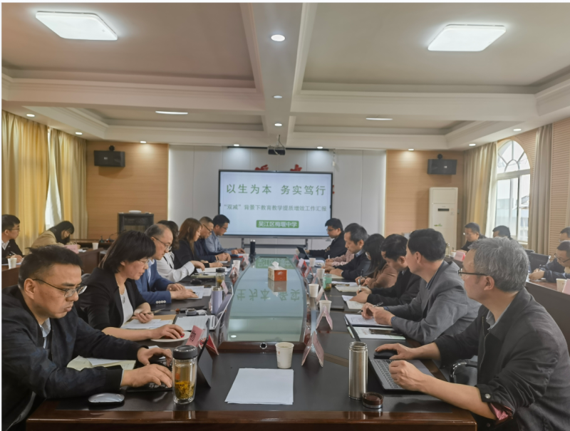 4月29日,在吴江区教育局教研室钱建芬副主任的带领下,由初中全体学科教研员、部分兼职教研员和苏州湾实验初中教育集团各校分管校长等组成的调研组莅临梅堰中学,对梅堰中学教育教学工作进行了专项调研。