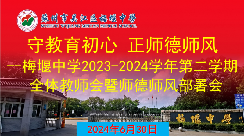 守教育初心 正师德师风 ——梅堰中学2023-2024学年第二学期 全体教师会暨师德师风部署会