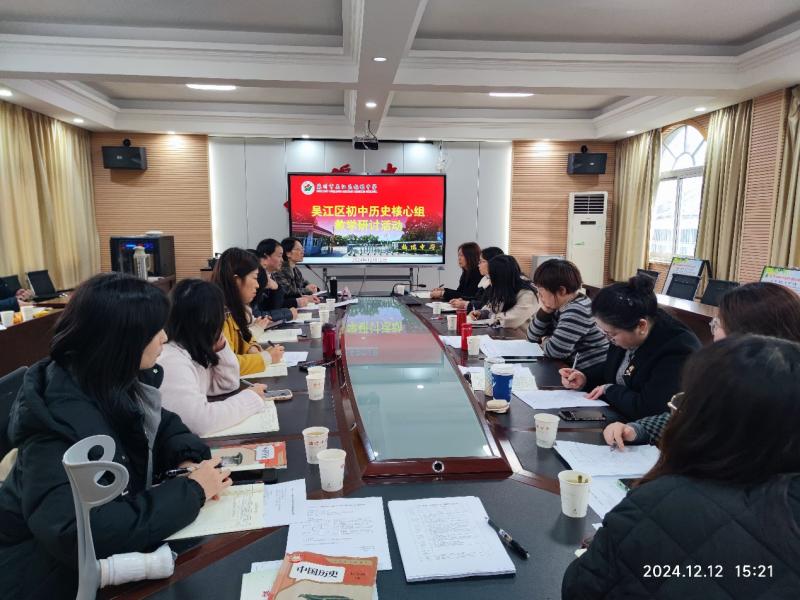 2024年12月12日,吴江区初中历史核心组研讨活动在梅堰中学举行。本次活动旨在深入贯彻历史新课程标准,聚焦青年教师的专业发展与研学案的编写,提升教师的教学水平和专业素养。区教育局教研室历史教研员季芳老师、历史兼职教研员吴振华老师、吴江区历史学科核心组成员、研学案编写组成员等20多人参加了此次活动。