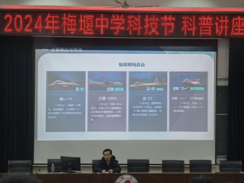 在这个科技日新月异的时代,航空航天技术的发展无疑是最令人瞩目的领域之一。我校张家浪老师深知这一点,因此在2024年11月25日特别组织了一场关于2024年中国珠海航展的科普讲座,旨在点燃学生们对科技探索的热情,引领他们走进航空航天的奇妙世界。