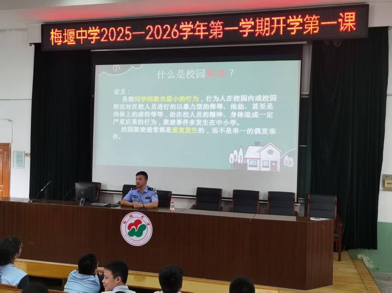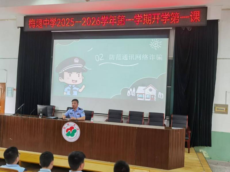 秋高气爽,丹桂飘香。新学期伊始,为切实加强青少年法治教育,提高学生的法律意识和自我保护能力,对学生开展交通安全教育、防溺水、防范通讯网络诈骗、预防校园欺凌、文明养犬等集中宣讲,营造平安、和谐、健康的校园法治环境,9月1日,梅堰中学特邀请法治副校长、平望派出所民警张利国来校,在阶梯教室为初二学生上“开学法治第一课”,用法律知识为新学期注入法治力量。