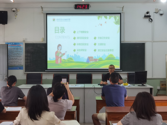 10月13日下午在电化教室组织全体班主任开展专题培训,重点讲解上下楼梯安全、课间活动安全、体育活动安全、实验课安全、饮食卫生安全、交通安全、消防安全、心理安全、预防校园欺凌、防范电信网络诈骗、防溺水等内容。要求各班级结合各类安全教育视频,对学生开展全方位安全教育。